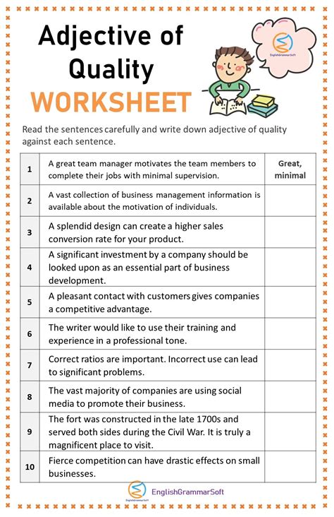 Our large collection of ela worksheets are a great study tool for all ages. Fill each blank with adjectives of quality in the following sentences : Try this exercise to test your grammar.